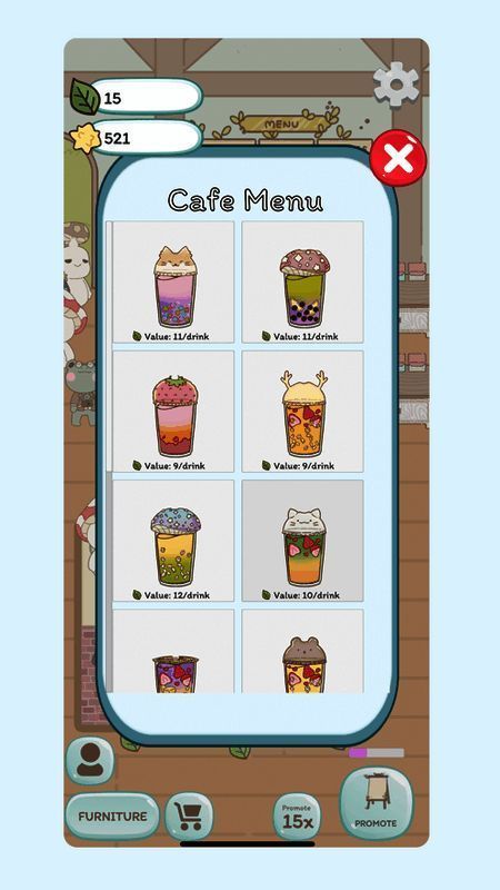 3. 若不断获得金币,就能去商场购置桌椅等家具来装饰奶茶店。