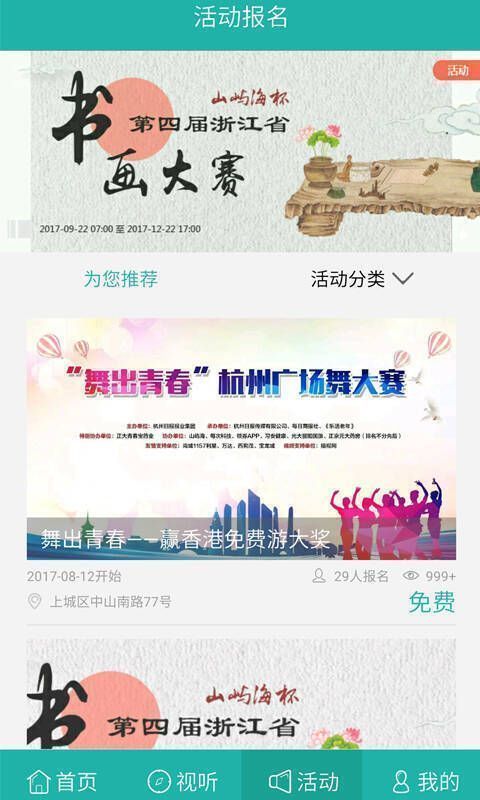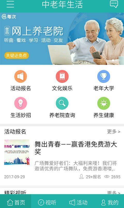 【活动报名】能在线报名全国的中老年活动赛事,像广场舞大赛、书画大赛、公益讲座等。