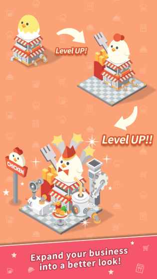 《小鸡餐厅(Foodpia)》属于放置类模拟手游。在游戏里,玩家将化身为连锁店店长,经营旗下的小鸡餐厅。即便退出游戏也无妨,闲暇时光不妨试试这款游戏来打发时间。