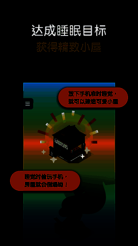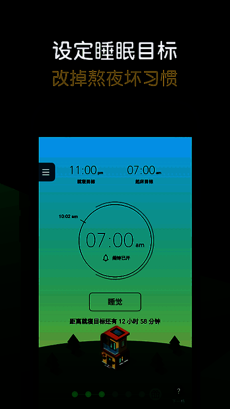 2、每天在就寝目标时间前打开 app,按下“睡觉”开始建造房屋。