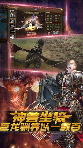 3、凶猛异兽震撼登场,炫丽外形,独立属性养成玩法,助战力迅猛提升。