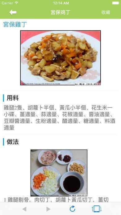 3、强大的收藏功能,遇到喜欢的菜谱可随时收藏;