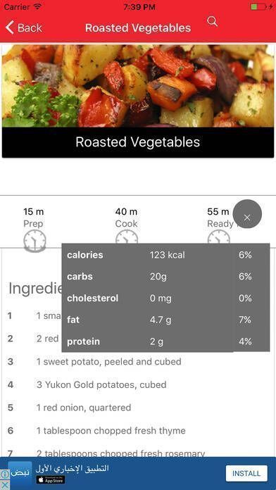 1、涵盖汤、沙拉、烧烤、面包等不同类别,还有各国特色菜肴。2、食谱详细页展示准备时间、烹饪时间以及营养信息,包括卡路里、碳水化合物等。3、每周更新新食谱。