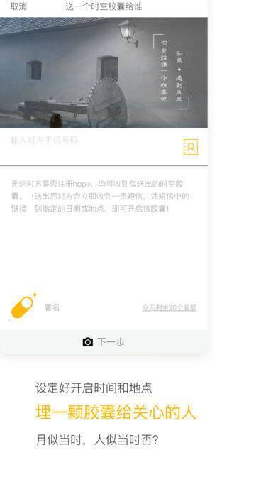 hopeAPP是手机端社交类软件,你可通过它为自己或他人写下想说的话,指定时间开启,体验跨越时空的惊喜。想给未来的自己或朋友留言的用户可直接下载使用。