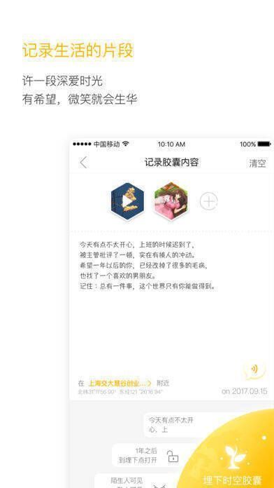 想埋时间胶囊却找不到合适地方?hope让这一切变得轻而易举。你甚至能把胶囊埋在真实土地上持续记录。hope是积极的生活方式,能让生活满是期待与惊喜。在hope里可拥有专属领地,埋下时间胶囊和自己或他人进行跨越时空对话。就像《解忧杂货店》里的浪矢杂货店,埋胶囊时可提问题,有几率获陌生人热心回应,一切都在隐秘状态下进行。在hope地图里可能发现别人公开的胶囊,或许就在你熟悉的小区、校园,过去就能开启,看过之后还能留些东西再埋好。从现在起,用hope陪你实现目标,埋下胶囊指定日期或地点开启,到时定会收获满满感动与惊喜。