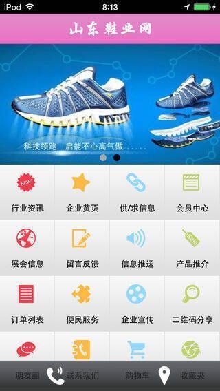 山东鞋业 app 不仅拥有购物、查询订单、搜索商品、查看行业资讯和产品评价等常用功能,还具备手机版特有的会员注册登录、广告位、招商开店等功能。其目标是整合当地品牌商、生产商、经销商,为商家和消费者提供一站式解决方案,欢迎大家下载使用。