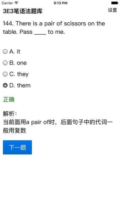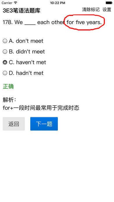 软件精选了331道3E英语笔试三级语法全真试题以及精选扩展习题,后续版本还会持续扩充题库。每道题都配有详细的试题解析,并且可以设置倒计时,是孩子参加3E英语笔试三级考试的必备刷题工具。为了培养小孩做题时随手圈关键词的习惯,在每道题未作答之前(倒计时期间),可以用手指在题目文本的任意位置进行画圈、划线等操作。软件还支持iOS内置词典,长按选词即可查词典,而且完全没有广告。
