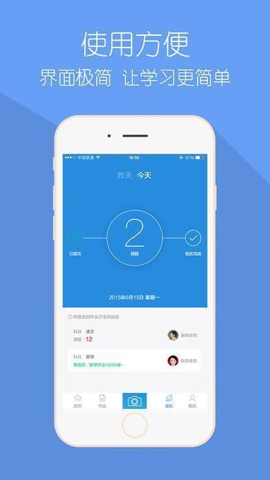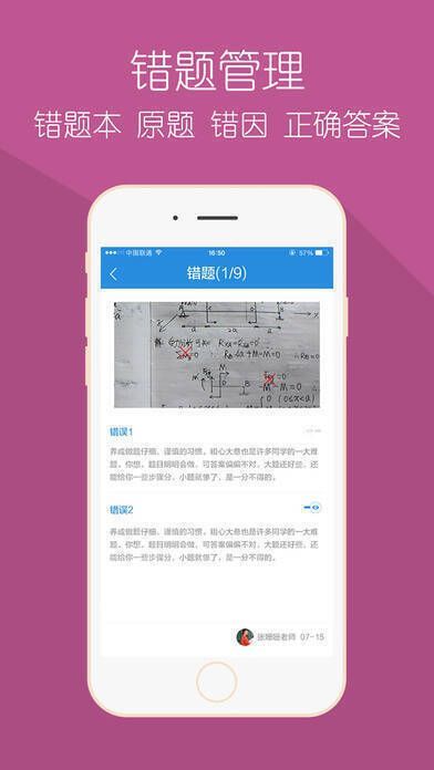 一、拍照纠错。每天用手机轻轻一拍,上传所有作业,1 小时内就有老师完成批改。