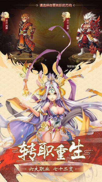 1、可进行转职重生,有六大职业供你选择,如同孙悟空的七十二变般变化多端。