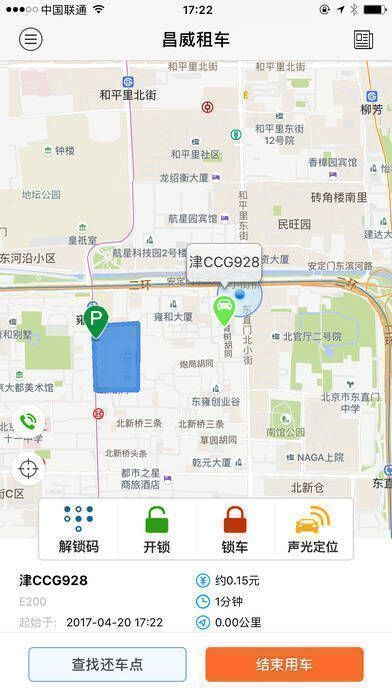 借助“昌威汽车共享”的自助租车系统,用户可查看周边闲置电动汽车,通过APP自助完成取车、还车和费用结算,无需人工干预。