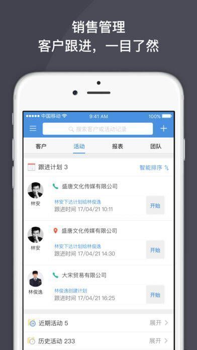任务管理:可随时了解团队成员任务进展,及时解决任务中的问题。企业通讯录:内部组织架构清晰,能快速查找指定员工。审批:支持请假、申购、出差等多功能审批,随时随地可快速处理,实现电子化办公。客户关系管理:高效统筹客户信息,提升销售效果。消息提示:实时推送任务信息,避免错过重要内容。