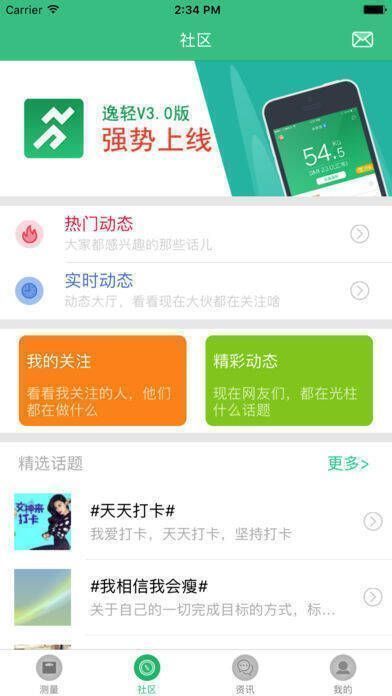 《逸轻》是一款与逸轻体脂秤搭配使用的体质分析软件。它能为用户检测身体各项健康数据,助力用户关注自身身体变化。用户可实时在手机端查看体重、水分、BIM等数据。软件亮点诸多,如通过蓝牙硬件测数据并生成报告,能设置重量单位、添加多成员管理,还内置可订阅的健康资讯。主要功能包含跑步计划、健康社区、与好友竞赛等。软件特色有目标设置、体重分析等。v3.0.17版本修复了体重单位显示问题。