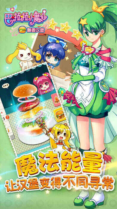 《巴啦啦小魔仙飘香汉堡》是一款获得同名动漫正版授权的手游。玩家在游戏里要运用给定食材制作美味汉堡,还有世界美食大赛系统,玩家历练后能在此展示厨艺。