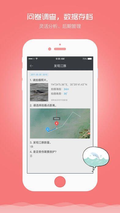 江豚管家作为专业协助巡护的手机应用,会自动记录巡护航行轨迹,半自动记录发现受伤江豚、非法渔业等事件,还能通过手机查看护渔员是否在岗工作,并随时进行电子记录。