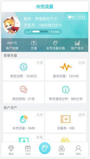 【兑换流量】通过签到、关注公众号、参与活动、做悬赏任务得流量币,再兑换流量,支持三大运营商,自动充值,极速到账。【流量充值】可直接购买,还能赠流量给好友。【流量圈】发布或打赏动态可获收益。【邀请有礼】邀请好友买咪卡有提成。