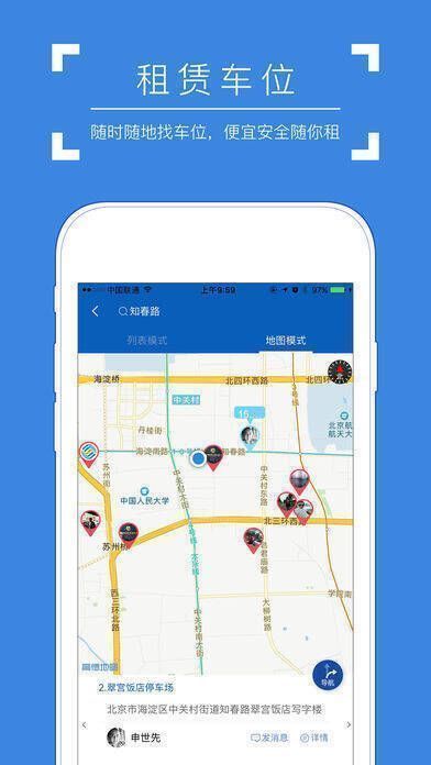 1、【寻找车位】车主可随时随地查询车位信息,支持日租、周租、月租等停车方式。