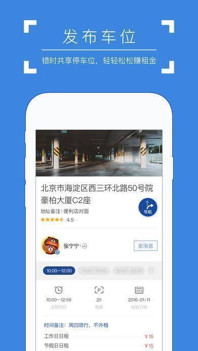 2、【发布车位】能将空闲车位出租出去,让你轻松赚取租金。