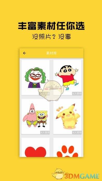 5、拥有海量素材可供选择,像海绵宝宝、皮卡丘、小新等形象素材都有。