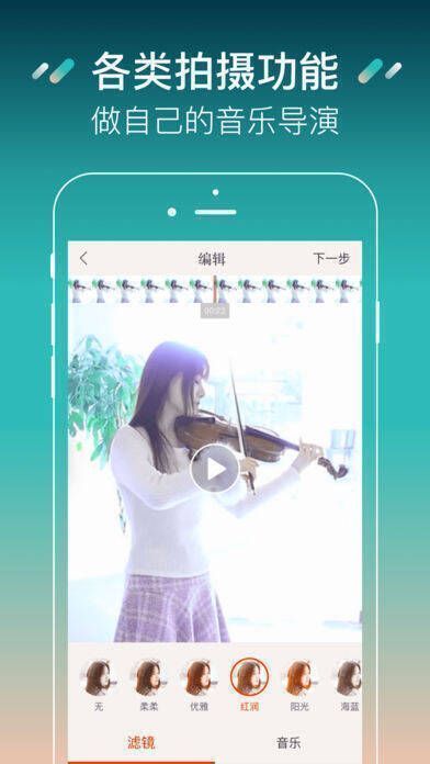 【人人成摄影家】支持断点拍摄、多段组合,有各类美颜与MV滤镜,还能将影片保存到本地。