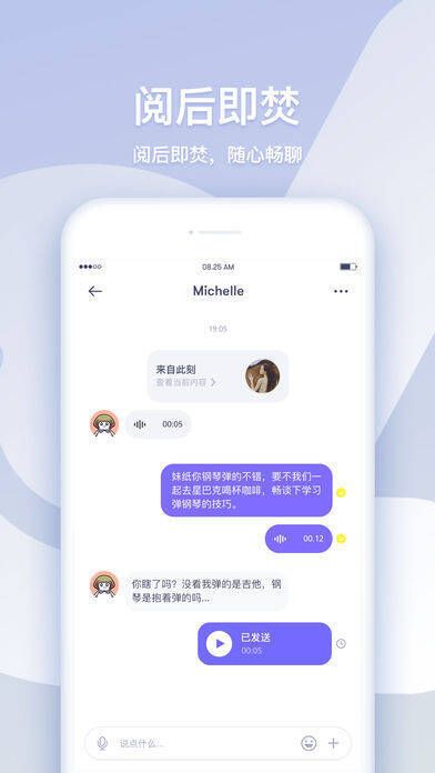 6. 阅后即焚:聊天对话框默认保存,好友消息阅后即焚,可随时开启此模式,聊得好可互加好友。