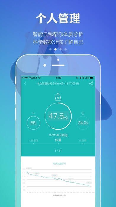 云悦智能体质分析仪是便捷实用的身体数据检测智能设备,可与手机等设备通过蓝牙连接,为用户提供全面的智能体质分析。它能轻松测量和管理你与家人身体的各项数据,依据数据制定健康轻体计划,还能给出个性化的运动、饮食和睡眠建议。该体质仪会测量体重、BMI、体脂率等十项健康基本数据,更懂你的健康状况。