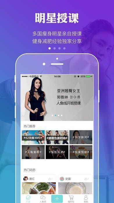 想重拾往昔的健美身材,却不知怎样快速减肥?下载《人鱼线》软件,它为你量身定制专业减肥计划,助你快速减肥且不反弹,更有明星直播授课。