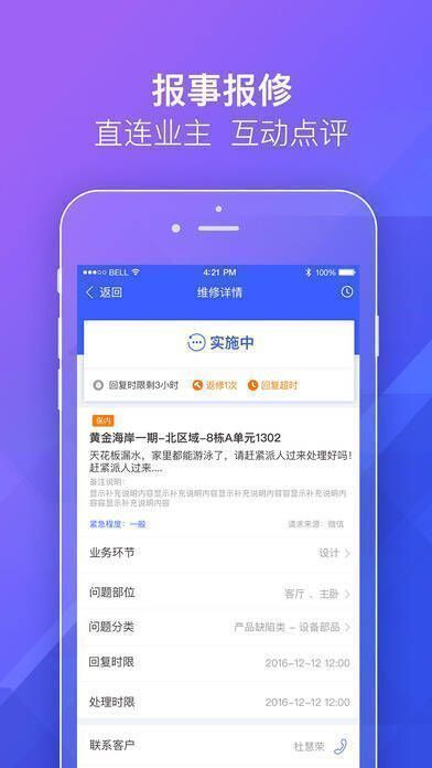 具备报事报修、设备巡检、综合巡逻、品质核查、问题整改等物业服务功能!