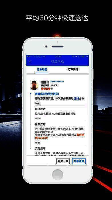闪送作为国内领先的同城速递服务公司,为用户提供全天候的全城代买、代送、跑腿等急件速送服务。通过手机APP下单,1分钟即可响应、10分钟闪送员上门、60分钟全城送达,还能随时随地查看订单轨迹,让你的快件更安全、快捷、省心。目前已在包括北京、上海、广州、深圳等数十个城市开通服务,欢迎下载体验。