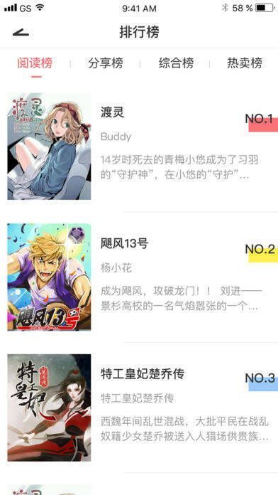 4. 界面清新,操作人性化。软件风格简约时尚,重点突出,容易上手,轻松进入漫画世界!新版书架让你轻松管理喜爱书籍,阅读和追新不繁琐。