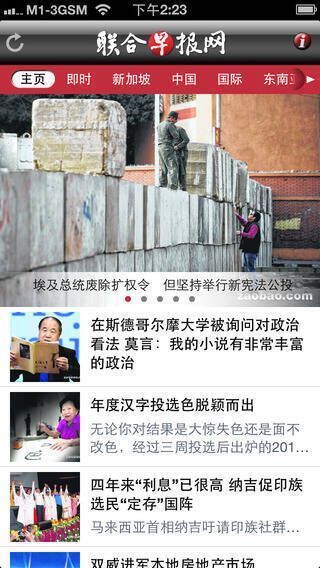 1、新闻内容丰富,涵盖即时新闻、新加坡新闻、中国新闻、财经新闻、东南亚新闻、国际新闻、言论、体育新闻、副刊等。
