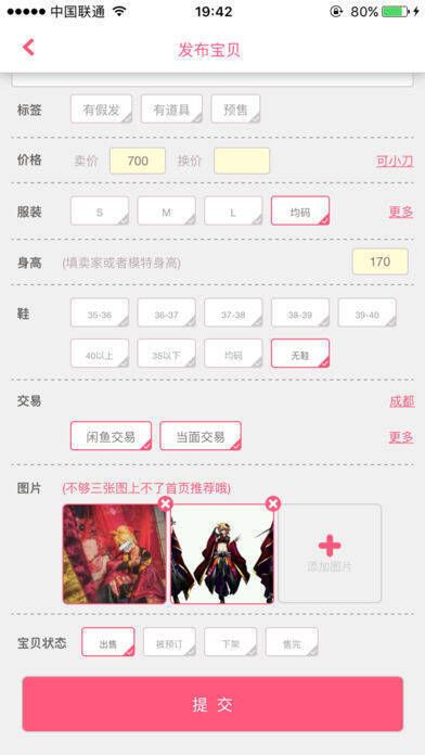 2、精心打造的cos交易集市,汇聚了90万件宝贝信息,能自动推送买家、自动匹配交换双方,助力每一位热爱cosplay的朋友轻松玩转;这里还有CP、摄影、妆娘、服装、道具、活动社团,以及一座cosplay的匠人之城等待你去探索。