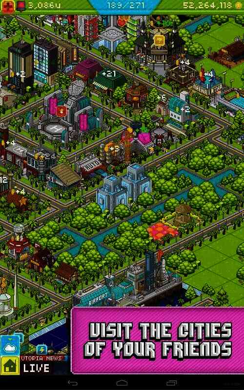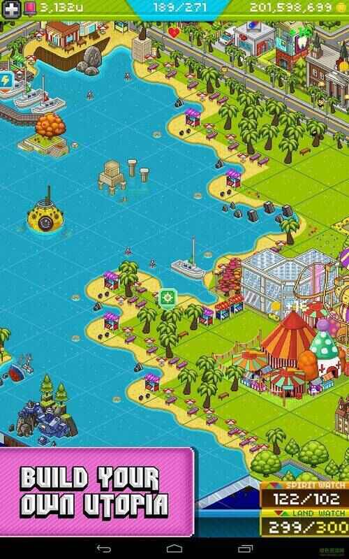 为每个乌托邦居民创造一份新工作,就会有收入存入银行。每栋建筑安置的居民越多,赚的钱也就越多。可以用现金建造更多住宅、工作场所,并用超过100种建筑(包括安卓市长专属的谷歌“科技公园”)来扩张土地。