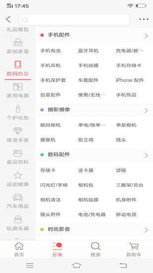 左侧的不同分类助你快速查找商品。