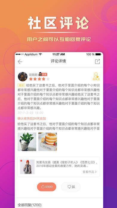 3、继续完善社区功能,用户间可互相回复评论,交流商品好坏。