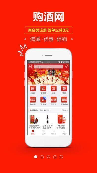 1、手机秒杀:每天8:00、12:00、16:00、20:00这4个时间段,会有各类白酒、红酒、洋酒进行限时秒杀抢购。