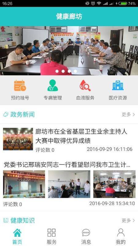 《健康廊坊》app是本地新闻资讯软件,具备健康申报、查询等多种功能,为廊坊地区民众带来详尽的健康状况申报体验,展示新活动信息,有预约挂号、接入新闻等有趣功能,可感受线上献血、挂号服务等。
