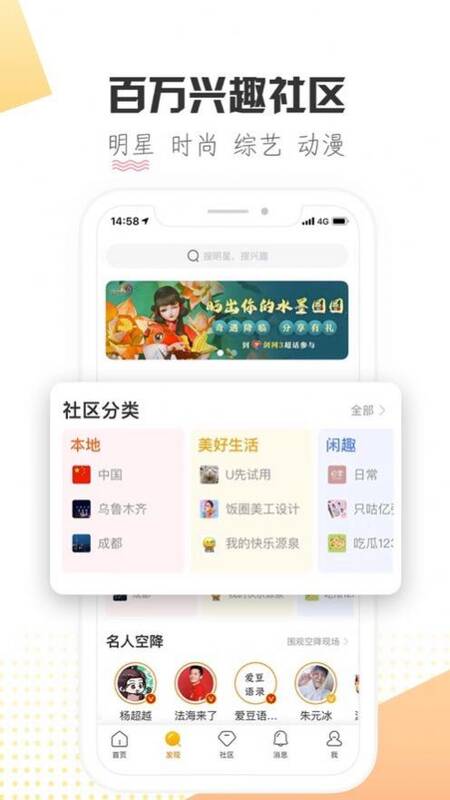 1. 百万兴趣社区里,明星、时尚、综艺、动漫等有趣内容应有尽有。