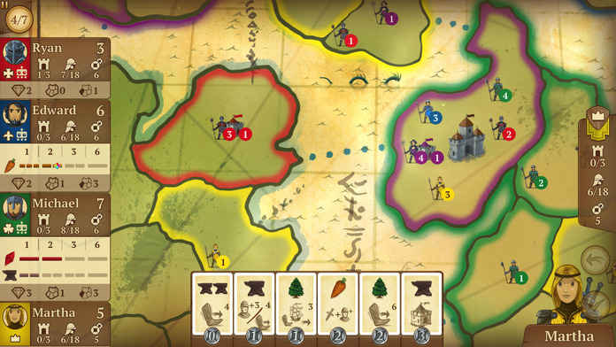 该游戏的玩法流程十分简单。你将和其他4名玩家一起,从展示的6张卡牌里进行选择。每张卡牌都会给予一定资源,同时会强制你采取相应行动。例如,“行动”可让你征服土地,“资源”则是决定最终胜负的累积点数。所以,你得深思当下哪种政策最利于帝国发展,因为获得的土地越多,最终获得的点数也就越多。《八分钟帝国》设置了三个等级的AI,还提供多人在线对战模式(涵盖异步交流与同步交流),玩法选择丰富。