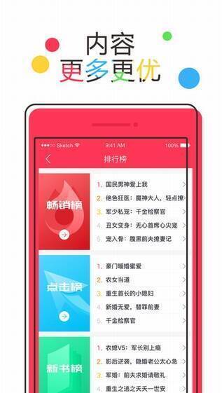 1、无广告,阅读不被打扰;2、内容全,囊括各类原创小说;3、精品多,严格审核每本皆优;4、价格低,大量免费作品随意看。