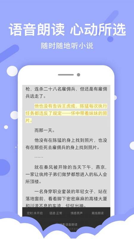 4、具备语音朗读功能,随心所选,随时随地听小说。