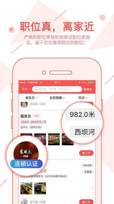 【真实近便职位】严格的职位审核机制确保职位真实可靠,基于定位为您推荐附近合适职位。
