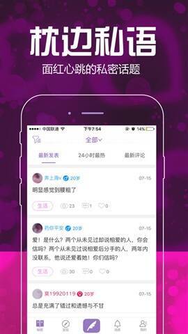 《私房话》是一个可以倾诉内心情感、表达心情的社区。在这个社区里,你能够倾诉自己在情感方面的困惑,以及对人生的迷茫,肯定会有人理解你,并为你解答疑惑。在这里,你总能找到与自己产生共鸣的知己。