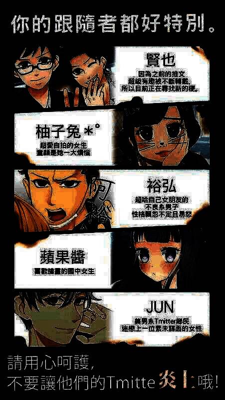 1、在虚构社交网站“Tmitter”上转载或发布易引发他人争吵的话题。