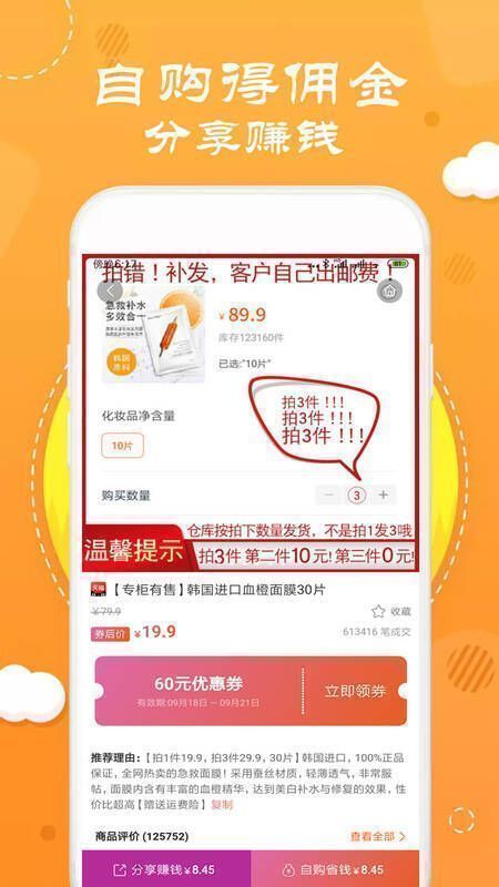 2、自己使用能轻松省钱,一键分享商品还可轻松盈利。