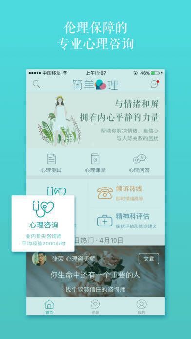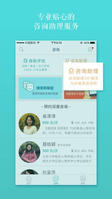 - 【便捷】推荐咨询师、预约续约,手机端操作一步到位。