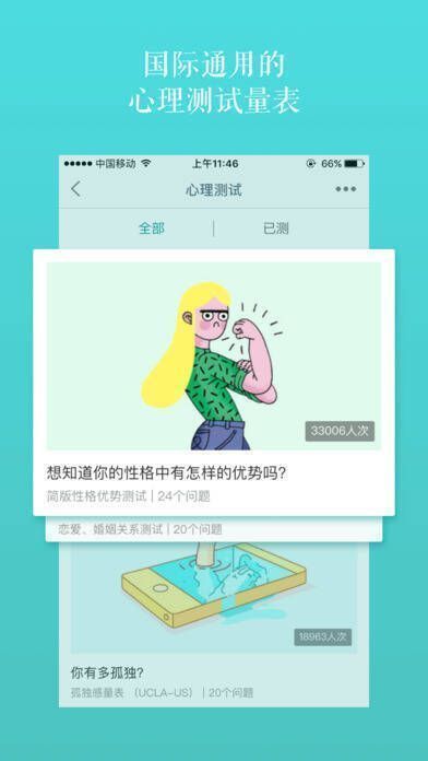 - 【心理测试】有26个专业心理测试,能快速了解心理健康状况。