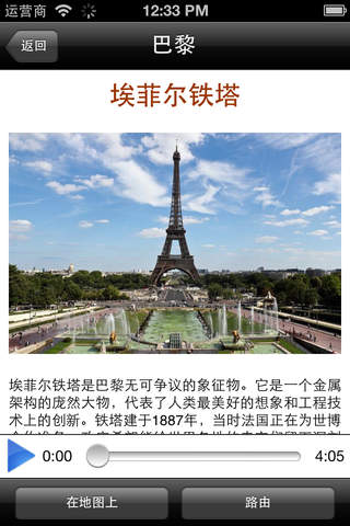 1. 该产品系列涵盖十座城市,您按需下载城市指南即可;2. 后续会陆续推出新的有声城市指南,软件也会随之升级;3. 为所有景点提供详细介绍,由专业人士录音,配有相应照片;4. 下载时联网,下载成功后可离线使用;5. 自带高清离线地图,无需支付网络漫游费。