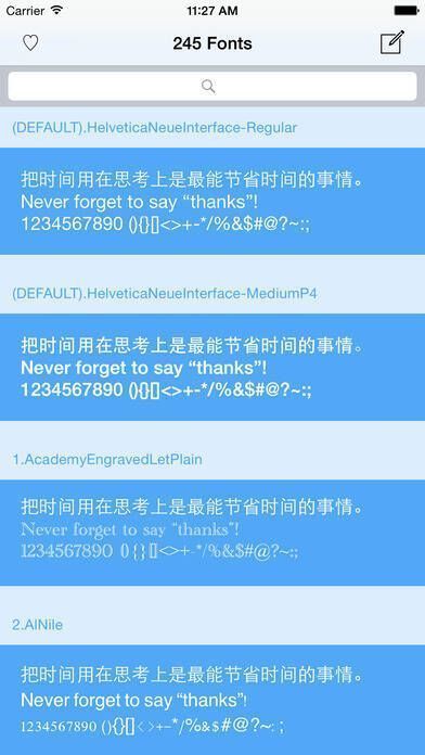 《系统字体》可协助UI设计师为App设计挑选合适的字体,是设计师不可或缺的字体手册。它能让用户浏览系统内置的所有字体,还支持自定义预览文字内容、字体颜色、字体大小以及背景色,用户能收藏心仪的字体,也能查看最受欢迎的字体。