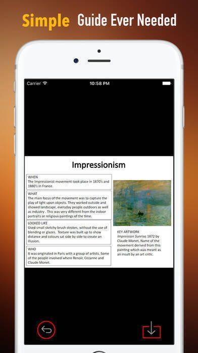 2、搜集艺术史词汇整体知识的图文解释,并制作成通俗易懂的图片或学习要点清单。用户可从iPhone或iPad直接查找参考,也能打印出来放办公桌上作为日常学习提醒。