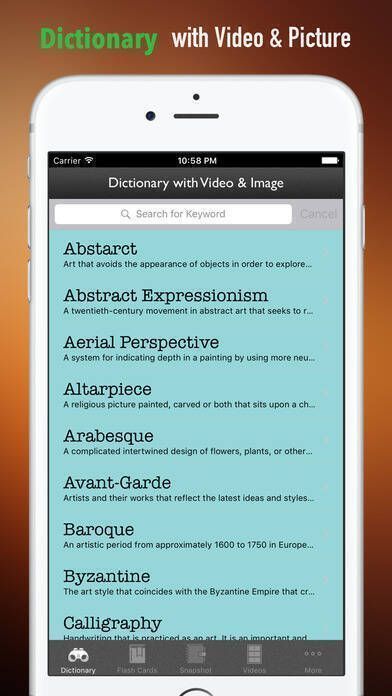 1、收集了所有常用的艺术史专业用语,无论何时何地对该领域用语有困惑,此应用程序都是强大的辞典工具。